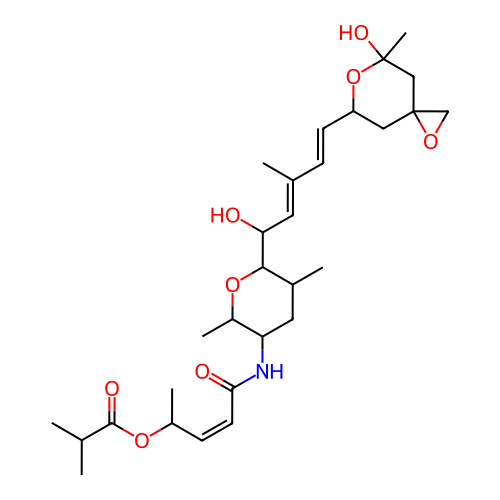 | SMILES | CC(/C=C/C1CC2(CO2)CC(C)(O)O1)=C\C(O)C1OC(C)C(NC(=O)/C=C\C(C)OC(=O)C(C)C)CC1C |