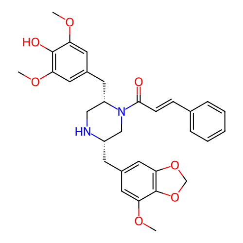 | SMILES | COC1=CC(C[C@H]2CN[C@@H](CC3=CC4=C(OCO4)C(OC)=C3)CN2C(=O)/C=C/C2=CC=CC=C2)=CC(OC)=C1O |