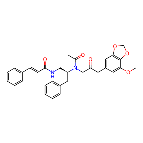 | SMILES | COC1=CC(CC(=O)CN(C(C)=O)[C@H](CNC(=O)/C=C/C2=CC=CC=C2)CC2=CC=CC=C2)=CC2=C1OCO2 |