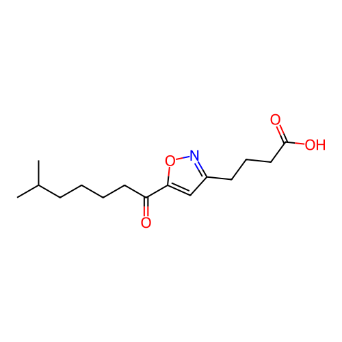 | SMILES | CC(C)CCCCC(=O)C1=CC(CCCC(=O)O)=NO1 |