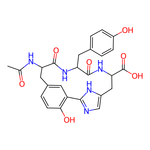 | SMILES | CC(=O)NC1CC2=CC(=C(O)C=C2)C2=NC=C(CC(C(=O)O)NC(=O)C(CC3=CC=C(O)C=C3)NC1=O)[NH]2 |