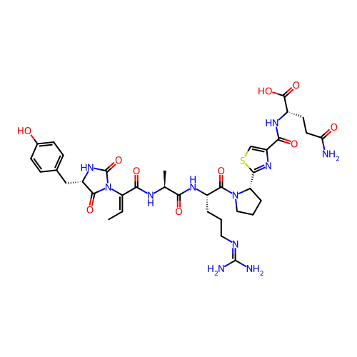 | SMILES | C/C=C(/C(=O)N[C@@H](C)C(=O)N[C@@H](CCCN=C(N)N)C(=O)N1CCC[C@H]1C1=NC(C(=O)N[C@@H](CCC(N)=O)C(=O)O)=CS1)N1C(=O)N[C@@H](CC2=CC=C(O)C=C2)C1=O |