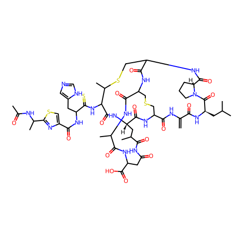 | SMILES | C=C1NC(=O)C2CSCC3NC(=O)C(CSC(C)C(NC(=S)C(CC4=CN=C[NH]4)NC(=O)C4=CSC(C(C)NC(C)=O)=N4)C(=O)N[C@@H](CC(C)C(=O)NC(=O)CC(C(=O)O)NC(=O)C(C)NC3=O)C(=O)N2)NC(=O)[C@H]2CCCN2C(=O)[C@@H](CC(C)C)NC1=O |