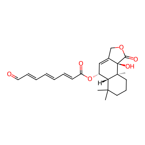 | SMILES | CC1(C)CCC[C@@]2(C)[C@H]1[C@H](OC(=O)/C=C/C=C/C=C/C=O)C=C1COC(=O)[C@@]12O |