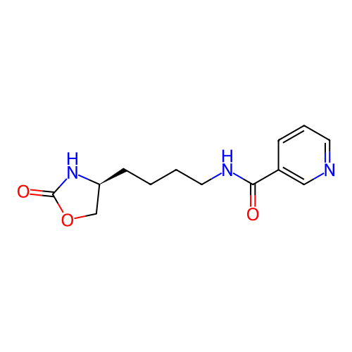 | InChI | InChI=1S/C13H17N3O3/c17-12(10-4-3-6-14-8-10)15-7-2-1-5-11-9-19-13(18)16-11/h3-4,6,8,11H,1-2,5,7,9H2,(H,15,17)(H,16,18)/t11-/m0/s1 |