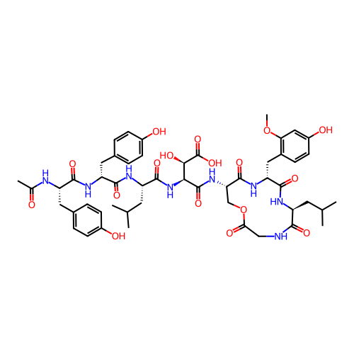 | SMILES | COC1=C(C[C@H]2NC(=O)[C@@H](NC(=O)[C@@H](NC(=O)[C@H](CC(C)C)NC(=O)[C@@H](CC3=CC=C(O)C=C3)NC(=O)[C@H](CC3=CC=C(O)C=C3)NC(C)=O)[C@@H](O)C(=O)O)COC(=O)CNC(=O)[C@H](CC(C)C)NC2=O)C=CC(O)=C1 |
