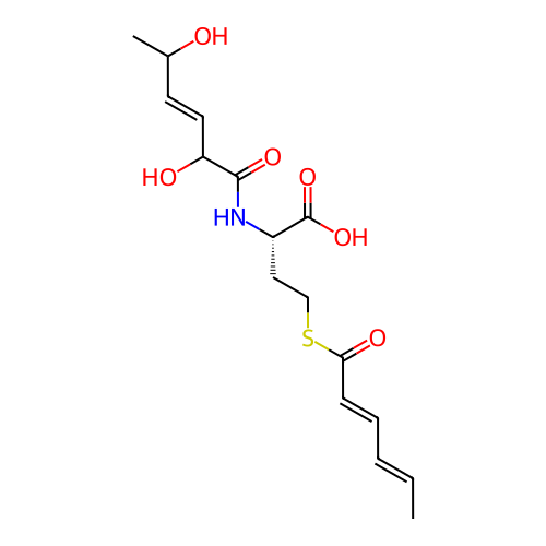 | SMILES | C/C=C/C=C/C(=O)SCC[C@H](NC(=O)C(O)/C=C/C(C)O)C(=O)O |