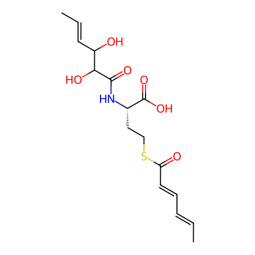 | SMILES | C/C=C/C=C/C(=O)SCC[C@H](NC(=O)C(O)C(O)/C=C/C)C(=O)O |