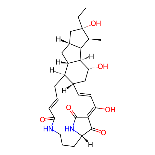 | SMILES | CC[C@]1(O)C[C@H]2C[C@@H]3[C@@H](C2[C@@H]1C)[C@H](O)C[C@@H]1/C=C/C(O)=C2C(=O)N[C@@H](CCCNC(=O)C=CC[C@H]13)C2=O |