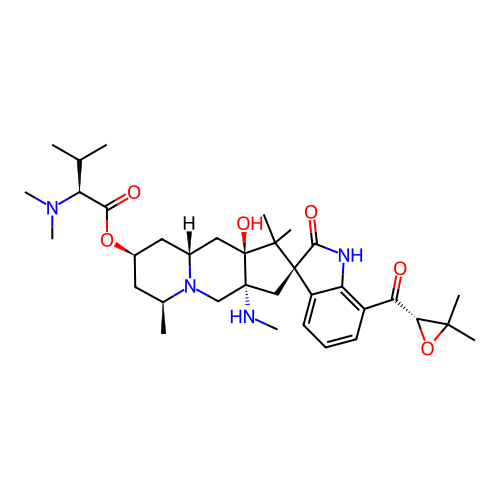 | InChI | InChI=1S/C35H52N4O6/c1-19(2)26(38(9)10)29(41)44-22-14-20(3)39-18-33(36-8)17-34(32(6,7)35(33,43)16-21(39)15-22)24-13-11-12-23(25(24)37-30(34)42)27(40)28-31(4,5)45-28/h11-13,19-22,26,28,36,43H,14-18H2,1-10H3,(H,37,42)/t20-,21+,22+,26-,28+,33+,34-,35-/m0/s1 |