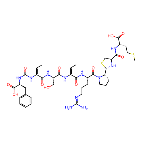 | SMILES | CC=C(NC(=O)N[C@@H](CC1=CC=CC=C1)C(=O)O)C(=O)N[C@@H](CO)C(=O)NC(=CC)C(=O)N[C@@H](CCCN=C(N)N)C(=O)N1CCC[C@H]1[C@H]1NC(C(=O)N[C@@H](CCSC)C(=O)O)CS1 |