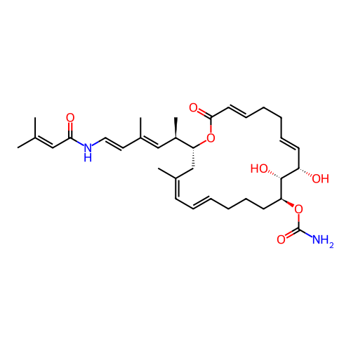 | InChI | InChI=1S/C33H48N2O7/c1-23(2)20-30(37)35-19-18-25(4)21-26(5)29-22-24(3)14-10-6-8-12-16-28(42-33(34)40)32(39)27(36)15-11-7-9-13-17-31(38)41-29/h6,10-11,13-15,17-21,26-29,32,36,39H,7-9,12,16,22H2,1-5H3,(H2,34,40)(H,35,37)/b10-6+,15-11+,17-13?,19-18+,24-14-,25-21+/t26-,27+,28+,29-,32-/m1/s1 |