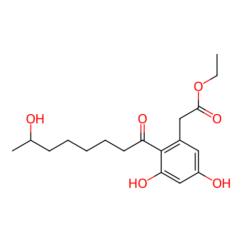 | SMILES | CCOC(=O)CC1=C(C(=O)CCCCCC(C)O)C(O)=CC(O)=C1 |