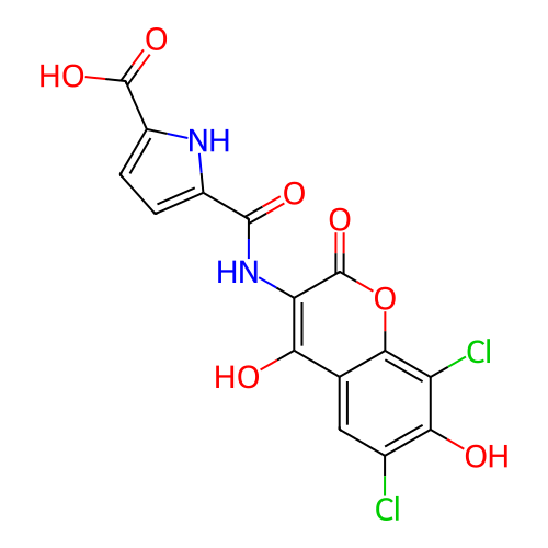 | SMILES | C1=C(NC(=C1)C(=O)O)C(=O)NC2=C(C3=CC(=C(C(=C3OC2=O)Cl)O)Cl)O |