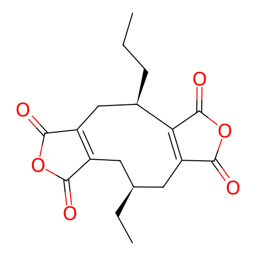 | InChI | InChI=1S/C18H20O6/c1-3-5-10-8-12-11(15(19)23-16(12)20)6-9(4-2)7-13-14(10)18(22)24-17(13)21/h9-10H,3-8H2,1-2H3/t9-,10+/m0/s1 |