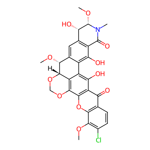 | SMILES | CN1[C@H]([C@H](C2=C(C1=O)C(=C3C(=C2)[C@H]([C@@H]4C5=C(C6=C(C(=C53)O)C(=O)C7=C(O6)C(=C(C=C7)Cl)OC)OCO4)OC)O)O)OC |