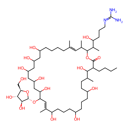 | SMILES | CCCCC1C(C(CCC(CCCC(CCCC(C(=CC(C(CC(CC(CC(CC(CCCCC(=CC(C(OC1=O)C(C)C(CCCN=C(N)N)O)C)C)O)O)O)O)O)O[C@@H]2[C@H]([C@@H]([C@H](O2)CO)O)O)C)O)O)O)C)O |