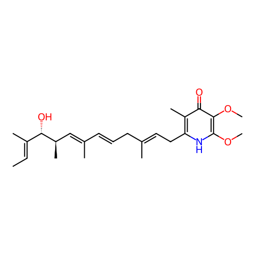 | InChI | InChI=1S/C25H37NO4/c1-9-18(4)22(27)19(5)15-17(3)12-10-11-16(2)13-14-21-20(6)23(28)24(29-7)25(26-21)30-8/h9-10,12-13,15,19,22,27H,11,14H2,1-8H3,(H,26,28)/b12-10+,16-13+,17-15+,18-9+/t19-,22+/m1/s1 |