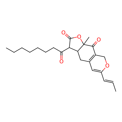 | SMILES | CCCCCCCC(=O)C1C2CC3=C(COC(=C3)/C=C/C)C(=O)C2(OC1=O)C |