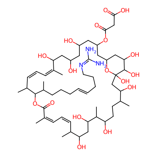 | SMILES | CC1CCC(C(C(CC(C(/C=C\C=C(/C(=O)OC(C(/C=C\C=C(/C(CC(CC(CC(CC2CC(C(C(O2)(CC1O)O)O)O)OC(=O)CC(=O)O)O)O)O)\C)C)C(C)CCC/C=C/CCCN=C(N)N)\C)C)O)O)C)O |