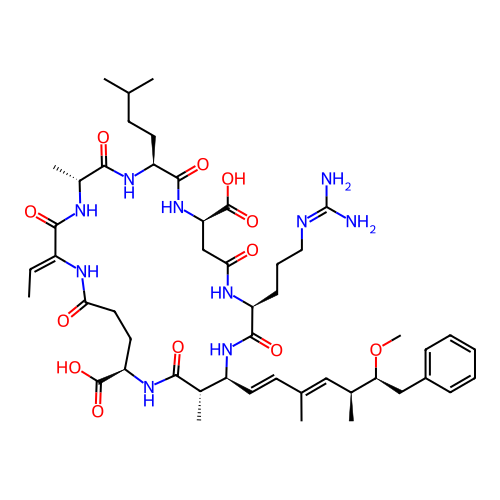 | SMILES | C/C=C\1/C(=O)N[C@@H](C(=O)N[C@H](C(=O)N[C@H](CC(=O)N[C@H](C(=O)N[C@H]([C@@H](C(=O)N[C@H](CCC(=O)N1)C(=O)O)C)/C=C/C(=C/[C@H](C)[C@H](CC2=CC=CC=C2)OC)/C)CCCN=C(N)N)C(=O)O)CCC(C)C)C |