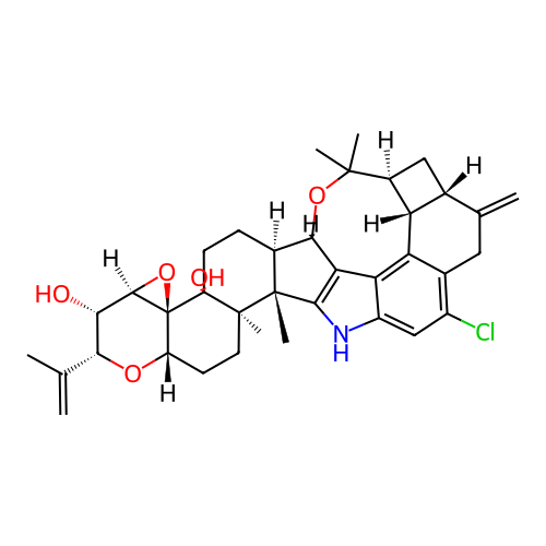 | SMILES | CC(=C)[C@@H]1[C@@H]([C@@H]2[C@@]3(O2)[C@@H](O1)CC[C@]4([C@]3(CC[C@@H]5[C@@]4(C6=C7[C@H]5OC([C@H]8C[C@H]9[C@@H]8C1=C7C(=CC(=C1CC9=C)Cl)N6)(C)C)C)O)C)O |