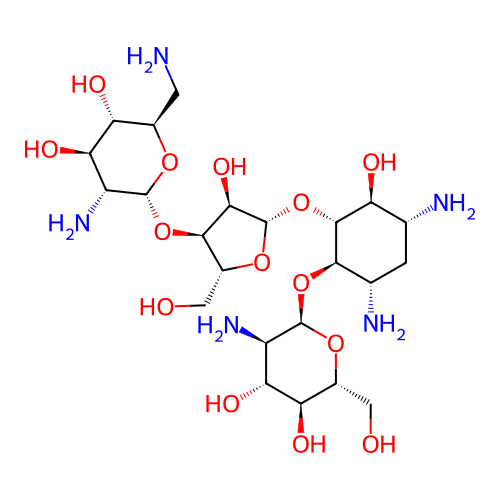 | InChI | InChI=1S/C23H45N5O14/c24-2-7-13(32)15(34)10(27)21(37-7)41-19-9(4-30)39-23(17(19)36)42-20-12(31)5(25)1-6(26)18(20)40-22-11(28)16(35)14(33)8(3-29)38-22/h5-23,29-36H,1-4,24-28H2/t5-,6+,7-,8-,9-,10-,11-,12+,13-,14-,15-,16-,17-,18-,19-,20-,21-,22-,23+/m1/s1 |