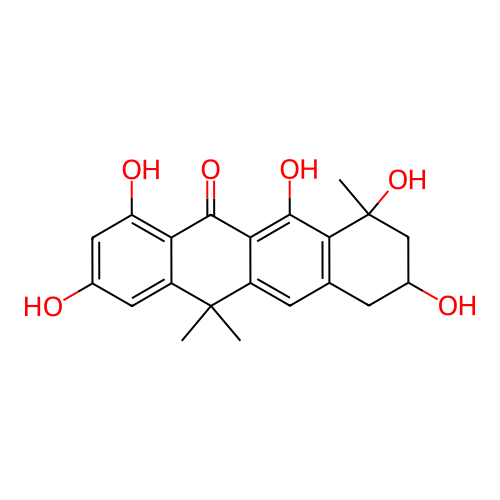 | InChI | InChI=1S/C21H22O6/c1-20(2)12-5-9-4-11(23)8-21(3,27)17(9)19(26)16(12)18(25)15-13(20)6-10(22)7-14(15)24/h5-7,11,22-24,26-27H,4,8H2,1-3H3 |