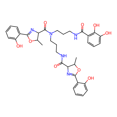 | SMILES | CC1C(N=C(O1)C2=CC=CC=C2O)C(=O)NCCCN(CCCNC(=O)C3=C(C(=CC=C3)O)O)C(=O)C4C(OC(=N4)C5=CC=CC=C5O)C |