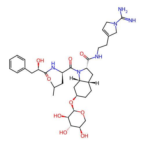 | SMILES | CC(C)C[C@H](C(=O)N1[C@H]2C[C@@H](CC[C@H]2C[C@H]1C(=O)NCCC3=CCN(C3)C(=N)N)O[C@@H]4[C@@H]([C@H]([C@@H](CO4)O)O)O)NC(=O)[C@@H](CC5=CC=CC=C5)O |