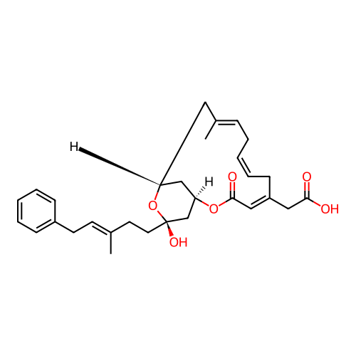 | InChI | InChI=1S/C30H38O6/c1-22(13-14-24-10-6-4-7-11-24)15-16-30(34)21-27-20-26(36-30)17-23(2)9-5-3-8-12-25(18-28(31)32)19-29(33)35-27/h3-4,6-11,13,19,26-27,34H,5,12,14-18,20-21H2,1-2H3,(H,31,32)/b8-3-,22-13+,23-9-,25-19+/t26-,27-,30+/m1/s1 |