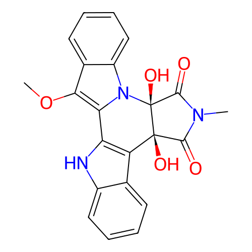 | SMILES | CN1C(=O)[C@@]2(C3=C(C4=C(C5=CC=CC=C5N4[C@@]2(C1=O)O)OC)NC6=CC=CC=C63)O |