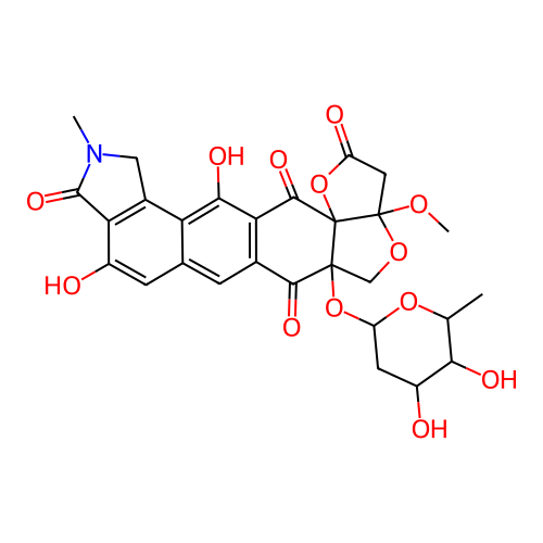 | InChI | InChI=1S/C28H27NO13/c1-10-21(33)15(31)6-17(40-10)42-26-9-39-27(38-3)7-16(32)41-28(26,27)24(36)20-12(23(26)35)4-11-5-14(30)19-13(18(11)22(20)34)8-29(2)25(19)37/h4-5,10,15,17,21,30-31,33-34H,6-9H2,1-3H3 |