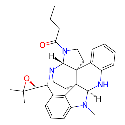 | InChI | InChI=1S/C30H36N4O2/c1-5-9-22(35)33-16-14-29-19-11-6-7-12-20(19)31-26-30(29)15-17-34(27(29)33)24(25-28(2,3)36-25)18-10-8-13-21(23(18)30)32(26)4/h6-8,10-13,24-27,31H,5,9,14-17H2,1-4H3/t24-,25+,26+,27+,29-,30-/m1/s1 |