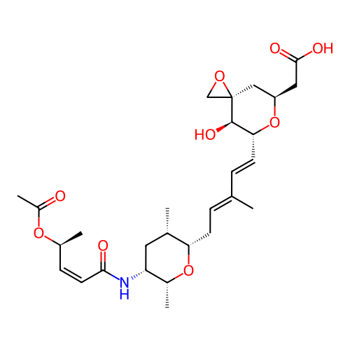 | SMILES | C[C@H]1C[C@H]([C@H](O[C@H]1C/C=C(\C)/C=C/[C@@H]2[C@H]([C@@]3(C[C@H](O2)CC(=O)O)CO3)O)C)NC(=O)/C=C\[C@H](C)OC(=O)C |