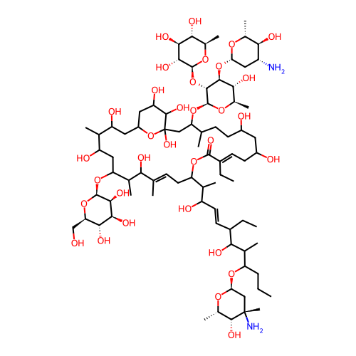 | SMILES | CCCC(C(C)C(C(CC)/C=C/C(C(C)C1C/C=C(/C(C(C(CC(C(C(CC2CC(C(C(O2)(CC(C(CCC(CC(C/C=C(/C(=O)O1)\CC)O)O)C)O[C@H]3[C@@H]([C@H]([C@@H]([C@H](O3)C)O)O[C@H]4C[C@H]([C@@H]([C@H](O4)C)O)N)O[C@H]5[C@@H]([C@H]([C@@H]([C@H](O5)C)O)O)O)O)O)O)O)C)O)O[C@H]6[C@H]([C@H]([C@@H]([C@H](O6)CO)O)O)O)C)O)\C)O)O)O[C@H]7C[C@]([C@@H]([C@@H](O7)C)O)(C)N |