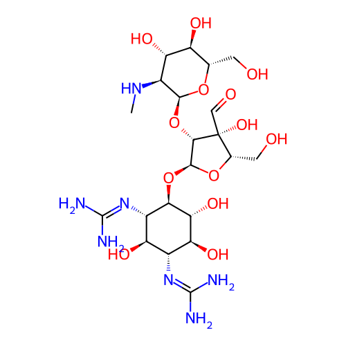 | SMILES | CN[C@H]1[C@@H]([C@H]([C@@H](O[C@H]1O[C@H]2[C@@H](O[C@H]([C@@]2(C=O)O)CO)O[C@@H]3[C@H]([C@@H]([C@H]([C@@H]([C@H]3O)O)N=C(N)N)O)N=C(N)N)CO)O)O |