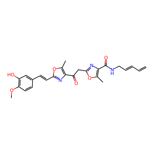 | SMILES | CC1=C(N=C(O1)CC(=O)C2=C(OC(=N2)/C=C/C3=CC(=C(C=C3)OC)O)C)C(=O)NC/C=C/C=C |