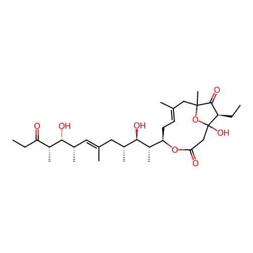 | SMILES | CCC(=O)[C@@H](C)[C@H](O)[C@@H](C)C=C(C)C[C@@H](C)[C@@H](O)[C@@H](C)[C@H]1CC=C(C)CC2(C)OC(O)(CC(=O)O1)[C@H](CC)C2=O |