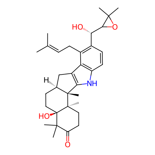 | InChI | InChI=1S/C33H45NO4/c1-18(2)9-10-20-21(26(36)28-30(5,6)38-28)11-12-23-25(20)22-17-19-13-16-33(37)29(3,4)24(35)14-15-31(33,7)32(19,8)27(22)34-23/h9,11-12,19,26,28,34,36-37H,10,13-17H2,1-8H3/t19-,26-,28?,31+,32+,33+/m0/s1 |